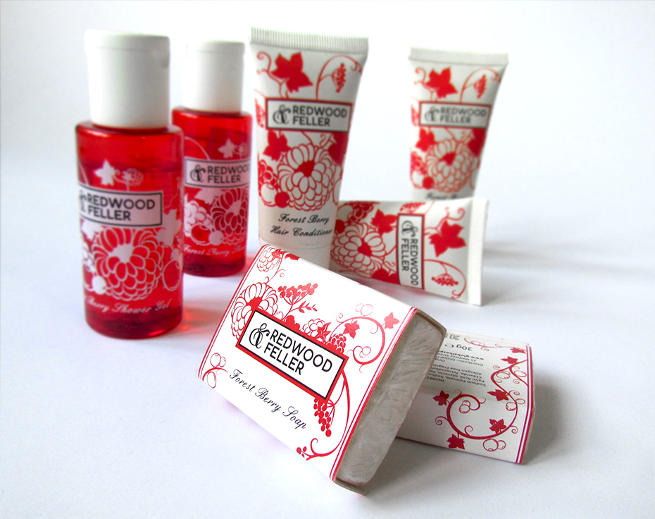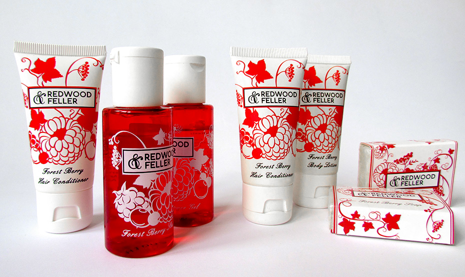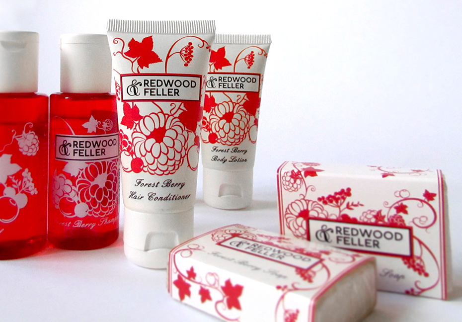 Forest berry motifs for Redwood & Feller toiletries (Grange Hotels). These products were made for the 3-star townhouse hotels, so we aimed for a less luxurious look and feel than in the case of the 4- and 5-star hotels. I only created the vector illustration for the products – logo and fonts were made by one of my colleagues. (2012)