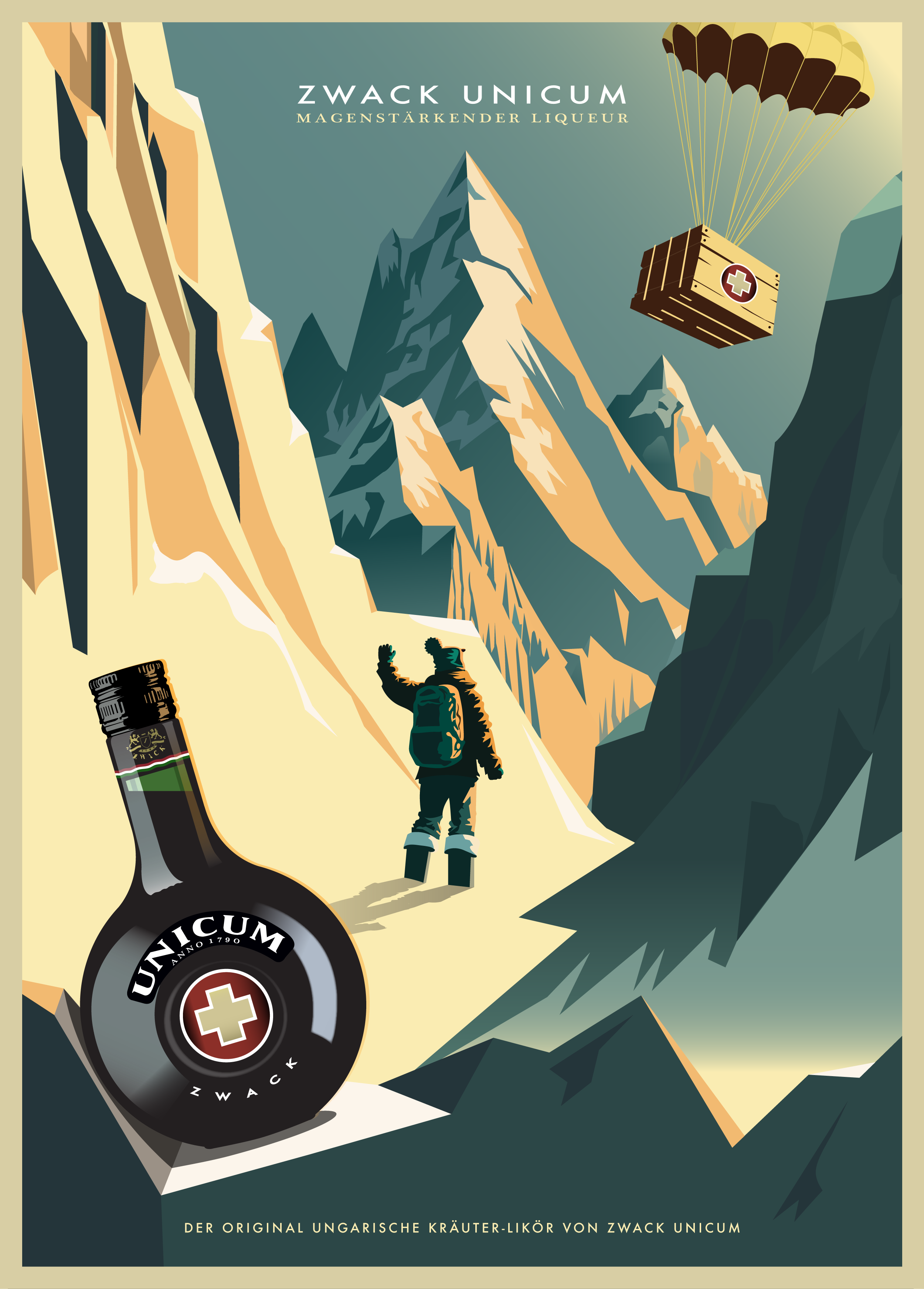 Unicum is a traditional Hungarian herbal liqueur that is made from a secret recipe. By providing a blend of over 40 different herbs and spices, Unicum has been known to offer several potential health benefits, including aiding digestion, improving liver function, and reducing inflammation. These properties may be particularly useful for someone who is struggling with physical discomfort or stress in a challenging environment, such as a stranded hiker in the snowy mountains.
